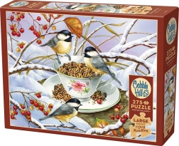 Scopri il motivo invernale con uccellini accanto a una tazza di tè che illuminerà ogni tavolo e soggiorno. Questo puzzle con 275 pezzi XL punta al comfort, offrendo al contempo una sfida ben studiata grazie al taglio originale COBBLE HILL. I pezzi non seguono la classica griglia, rendendo l’esperienza di montaggio divertente, varia e sempre sorprendente.