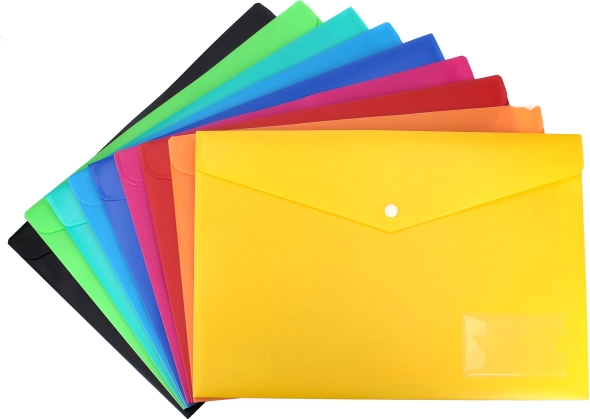 Questa cartella è realizzata in plastica morbida, garantendo la sua facile lavabilità e lunga durata. La pratica chiusura con bottone mantiene al sicuro tutti i tuoi documenti impedendone la perdita.