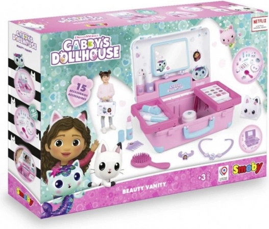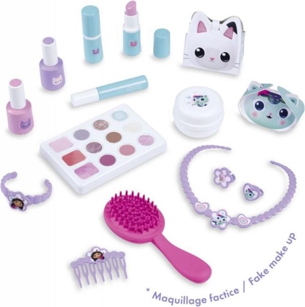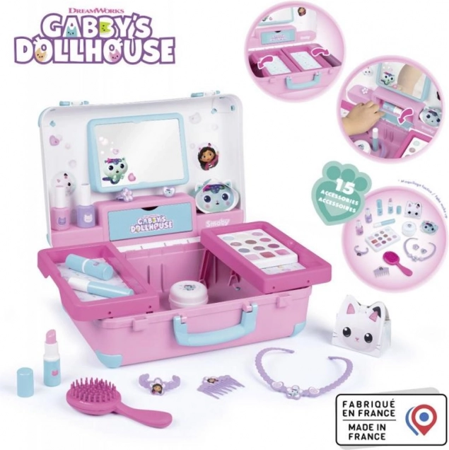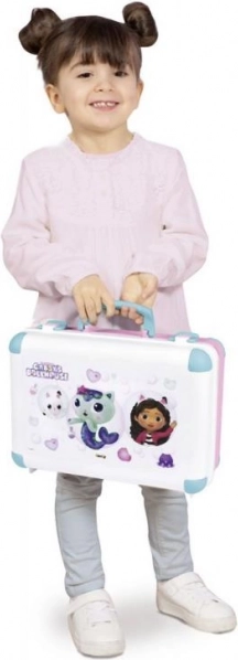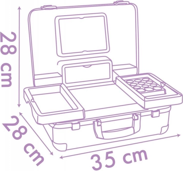 La valigetta è dotata di uno specchio pratico, mensole, scomparti e un compartimento segreto per riporre in sicurezza gli oggetti preferiti. Grazie al suo design compatto, è facilmente trasportabile, rendendo possibile il gioco del parrucchiere e del trucco ovunque.