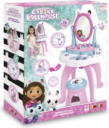 Tavolino 2 in 1 Casetta per gatti di Gabi offre ai bambini ore di divertimento nel gioco di abbellimento. Include uno specchio, uno sgabello e 12 accessori alla moda ispirati al cartone la Casa delle Bambole di Gabby.