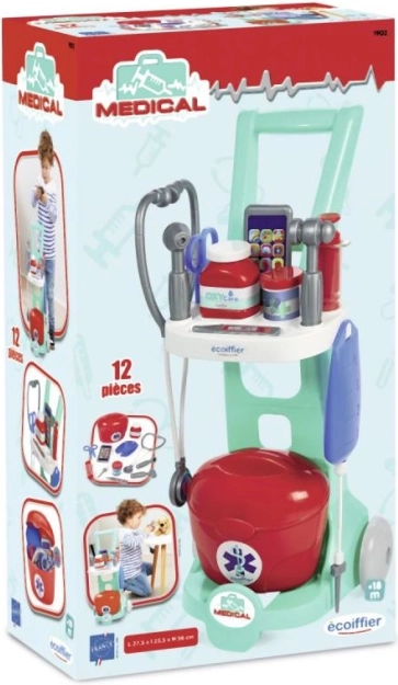 Il set include una valigetta e accessori realistici come stetoscopio, siringa, termometro, forbici e altri elementi per la visita del paziente. La struttura leggera dal peso di soli 1,085 kg garantisce uno spostamento confortevole in casa e nella cameretta.