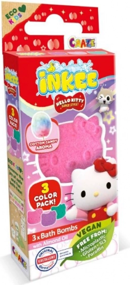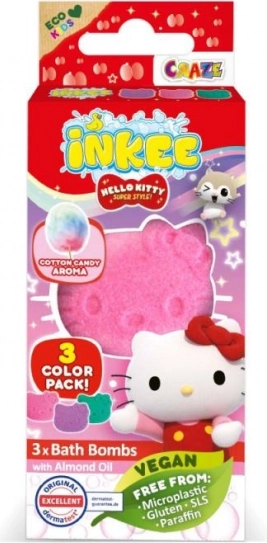 Scopri la magia del bagno con il mini pack Inkee Hello Kitty. Tre piccole bombe frizzanti (3×15 g) trasformano l’acqua in un bagno giocoso e colorato con una delicata fragranza di zucchero filato. La confezione elegante con finestra conquisterà bambini e fan di HELLO KITTY ed è perfetta come pensierino.