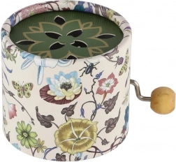 Questa scatola musicale manuale in una scatolina di metallo con stampa in carta e coperchio floreale riproduce una melodia semplicemente ruotando la manovella. Grazie alle dimensioni compatte di 9 × 6 × 9 cm si impugna bene e entra facilmente in borsa o su una mensola. È ideale per momenti di calma, per stimolare i sensi e come grazioso complemento per la cameretta dei bambini.