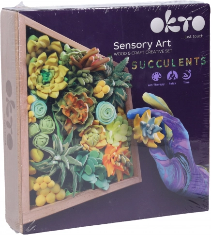 Questo set creativo è ideale per chi desidera realizzare una decorazione 3D con succulente senza bisogno di annaffiatura e cura. Grazie agli strumenti inclusi modellerai con facilità forme realistiche e combinazioni di colori che risalteranno nella cornice in legno come una vera opera da parete.