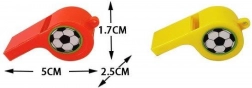Questo fischietto di plastica è un accessorio ideale per eventi sportivi e attività ricreative. Con una lunghezza di 5 cm, è facilmente trasportabile e i colori vivaci sono ben visibili.