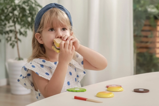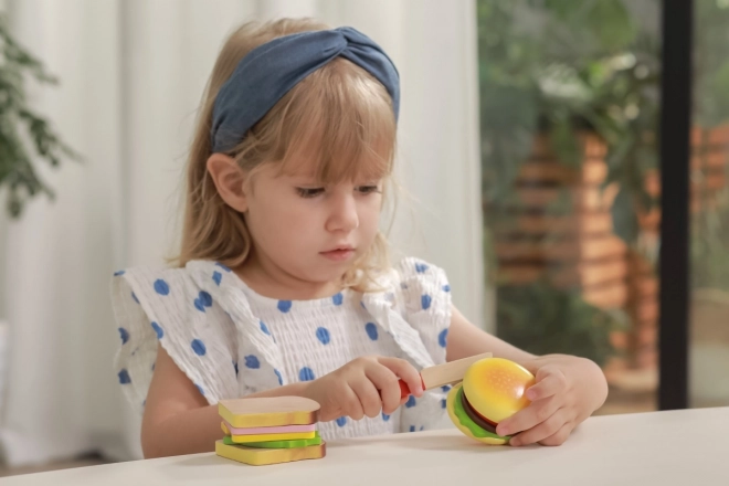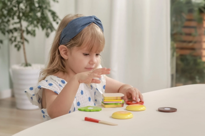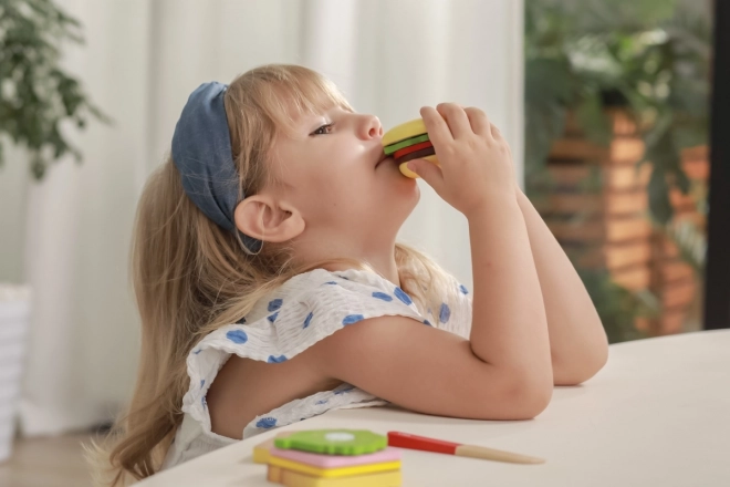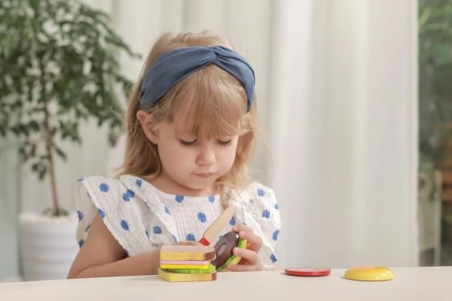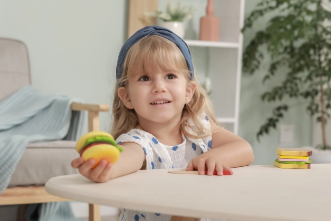 Il set supporta il gioco creativo, dove i bambini possono creare diverse combinazioni di panini e hamburger, insegnando l'immaginazione e la pianificazione.
