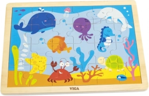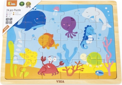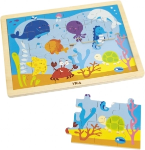 Puzzle di legno divertente con il tema del mondo sottomarino è un'ideale attività per i bambini. Assemblare i 24 pezzi aiuta a sviluppare abilità cognitive e motorie.