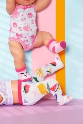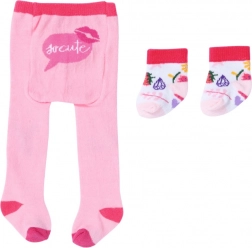 Arricchisci il guardaroba della tua bambola BABY born con questi adorabili collant e calzini, progettati non solo per fornire calore ma anche per un'espressione di moda. Con i loro colori pastello, diventano l'accessorio ideale per ogni piccola mamma.