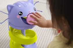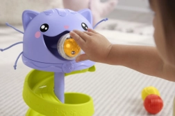Guarda i bambini inserire le palline nella bocca del gatto e osservarle rotolare giù per lo scivolo a spirale.