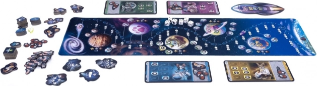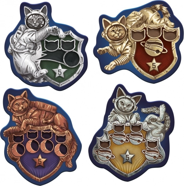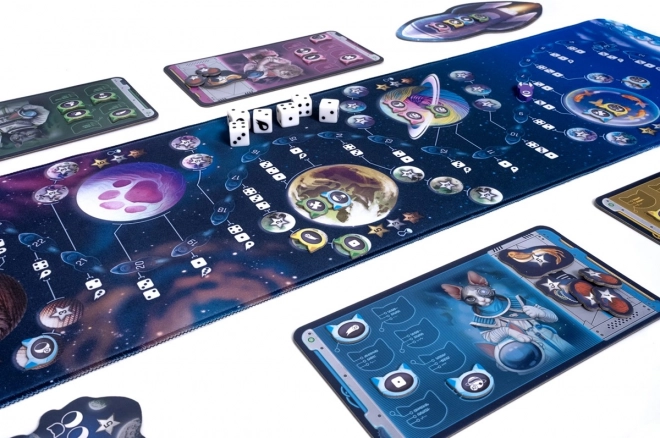 - Il destino di ogni spedizione è deciso dai dadi: il comandante li lancia e poi sceglie quali usare per muoversi sul tabellone. Dopo ogni volo riuscito potete decidere che il vostro astronauta felino esca dal razzo e atterri su uno specifico satellite o pianeta. In questo modo raccogliete punti, bonus e completate obiettivi.
