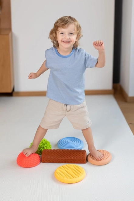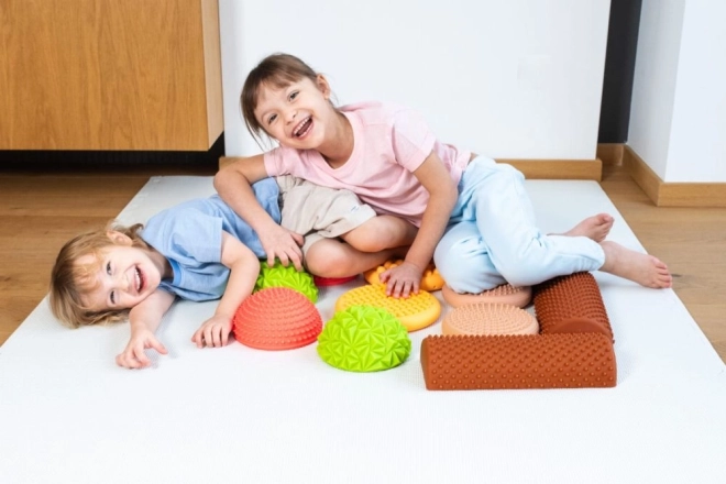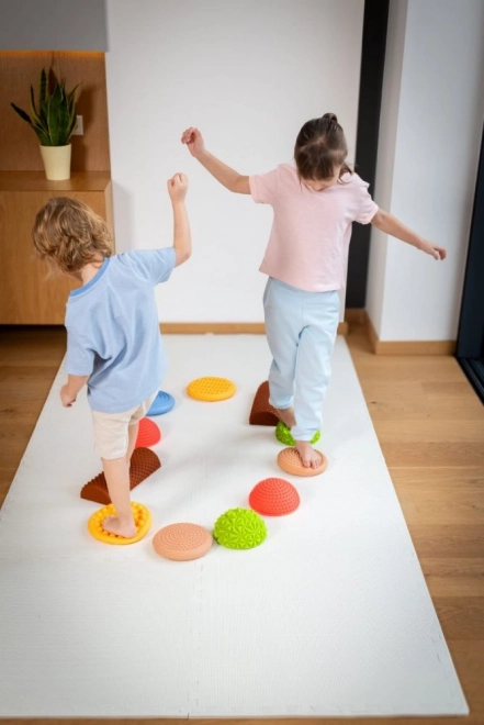 Questo percorso sensoriale nei delicati colori pastello è perfetto per gioco, terapia ed esercizio. Camminando su pietre e rulli, i bambini allenano l’equilibrio, la motricità grossa e l’orientamento spaziale. Le superfici diverse con rilievi offrono un’intensa stimolazione tattile, che aiuta ad attivare i piedi e migliorare la stabilità.