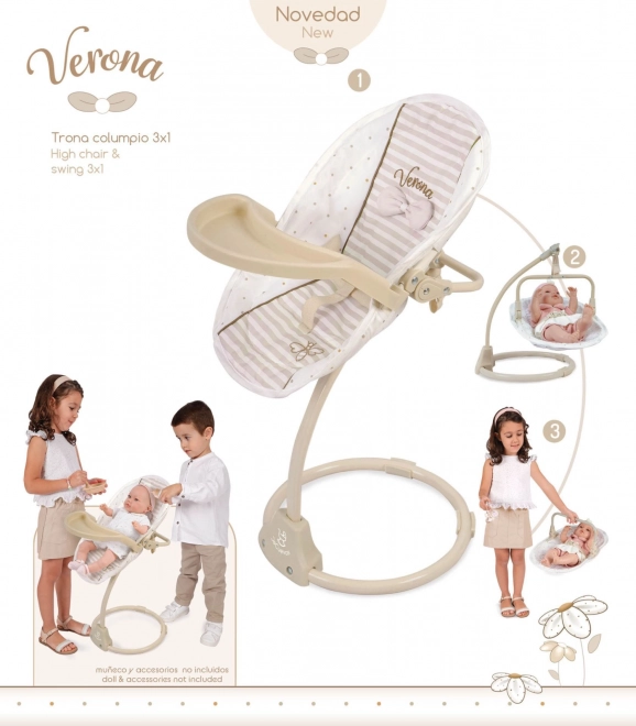 Seggiolone multifunzione e altalena per bambole 3 in 1 Verona