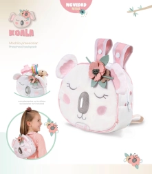 Cercate il primo zainetto per il vostro bambino, bello ma anche pratico? Questo zainetto rosa e bianco con motivo di koala addormentata con fiore ha dimensioni compatte, una piacevole superficie in tessuto e una comoda chiusura a cerniera. Grazie agli spallacci regolabili assicura un comfort di trasporto per i bambini dai 3 anni.