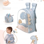 L’immagine dominante della mamma dinosauro con il suo cucciolo su uno sfondo azzurro tenue rende lo zainetto un compagno preferito per l’asilo e per le gite.