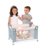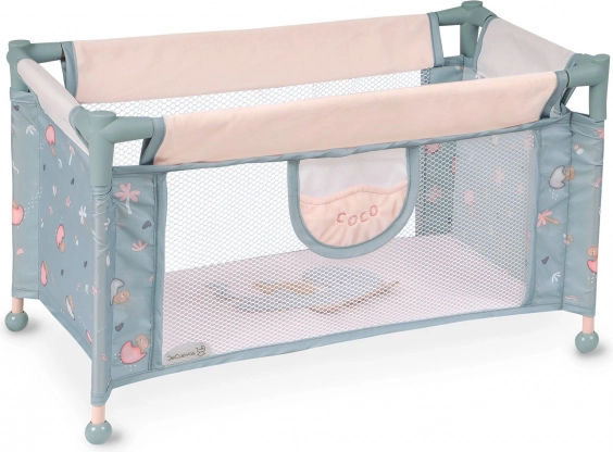 Il lettino da viaggio per bambole COCO è un bellissimo complemento per la cameretta e un pratico alleato in viaggio. Grazie al solido telaio in metallo e plastica e ai lati in tessuto con rete, è leggero, sicuro e ben ventilato. La sobria finitura grigio-azzurra con il motivo del tenero cucciolo di dinosauro si coordina con gli altri accessori della collezione.