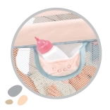 Il lettino si ripiega in un attimo in un piccolo pacchetto, occupa pochissimo spazio e i bambini possono portarlo ovunque. La pratica tasca laterale tiene a portata di mano biberon, ciuccio e altri indispensabili per la bambola.