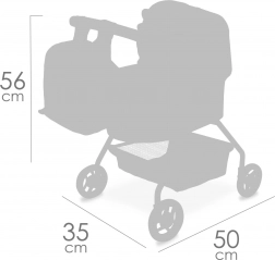 Il pratico cestino inferiore contiene tutto il necessario per la bambola e il morbido materassino assicura comfort durante la passeggiata.
