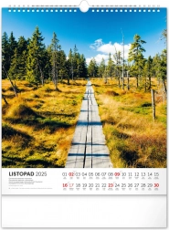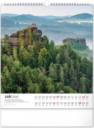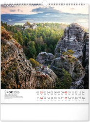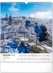 Il calendario da parete Escursioni nel paesaggio ceco 2025 vi accompagna attraverso pittoreschi scenari naturali in tutta la Repubblica Ceca. Ogni mese porta con sé una nuova atmosfera: dai panorami montani agli angoli boschivi fino agli specchi d’acqua.