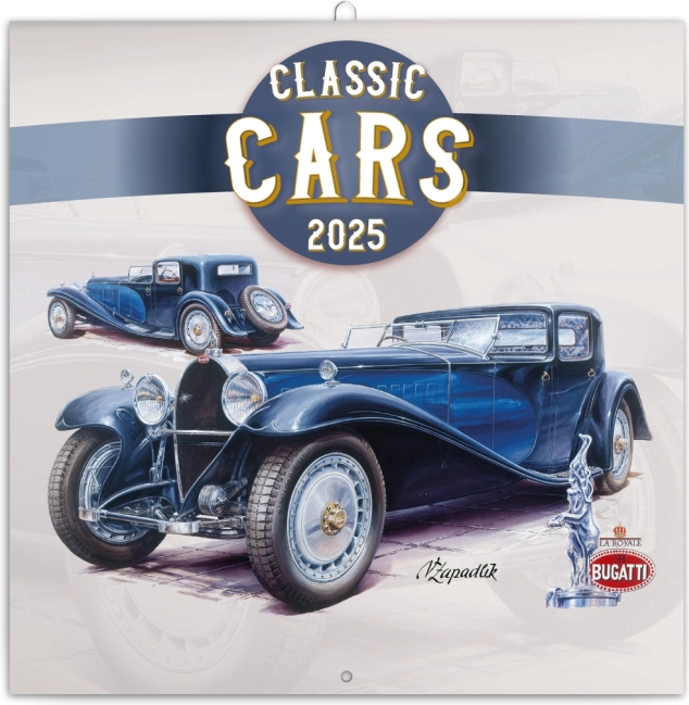 Elegante calendario per appunti con illustrazioni di auto d’epoca del pittore di fama mondiale Václav Zapadlík, ideale per collezionisti e amanti delle auto classiche. Offre 12 disegni unici di automobili storiche, un calendario chiaro da settembre 2024 a dicembre 2025 in sei lingue, le fasi lunari e le festività importanti e ampio spazio per le note per ogni giorno.