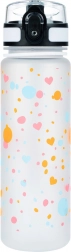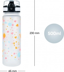 Elegante borraccia in tritan da 500 ml con motivo a cuoricini, ideale per la scuola, lo sport e le gite. Offre un coperchio a prova di perdite con blocco, un pratico laccetto per il trasporto e un filtro interno per frutta o tè. Realizzata in sicuro tritan privo di BPA, inodore e adatta anche a bevande calde.
