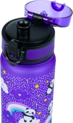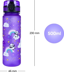 Elegante bottiglia Tritan con capacità di 500 ml vi conquisterà non solo per il suo design ma anche per la sua funzionalità. Realizzata in Tritan certificato, non emette odori sgradevoli e non contiene sostanze nocive come BPA, PVC e ftalati. Grazie al filtro incluso nella bottiglia, potete usarla per limonate con frutta o tè, mentre il materiale è idoneo anche per bevande calde. Il motivo elegante con panda e arcobaleno rende questa bottiglia un ottimo accessorio per i bambini.