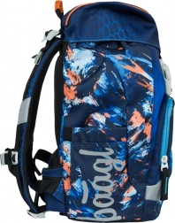 Tasca anteriore con zip, tasche laterali con chiusura per le bottiglie e spazioso scomparto interno monocompartimento offrono spazio sufficiente per tutte le necessità scolastiche.