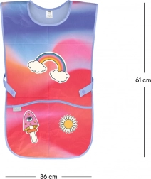 Le due tasche inferiori tengono a portata di mano pennelli e pastelli. Il laccio regolabile al collo e l’allacciatura in vita assicurano che il grembiule calzi bene.