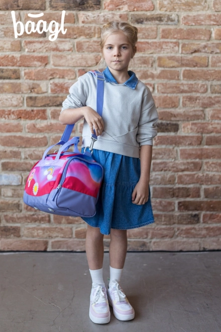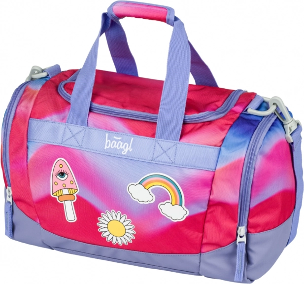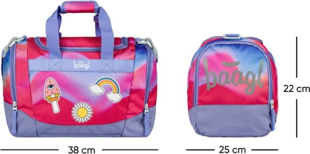 Leggera e alla moda, la borsa sportiva per bambini BAAGL con motivo arcobaleno è ideale per corsi, ginnastica e come bagaglio a mano. Offre una capiente scomparto principale con ampia apertura, tasca separata per le scarpe, tracolla rimovibile e regolabile e fondo rinforzato impermeabile. L’apertura scorrevole è garantita da affidabili cerniere YKK e sono presenti elementi riflettenti per la sicurezza.