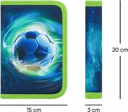 Stile e resistenza in un astuccio con motivo di pallone da calcio, ideale per studenti che vogliono avere sempre a portata di mano e in ordine i propri strumenti. La configurazione a un solo scomparto con due alette offre una suddivisione intelligente per matite, pennarelli e righello.