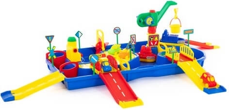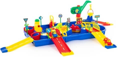 Il set è progettato per il gioco all’aperto: perfetto per il giardino, la sabbiera o vicino alla piscina. Componenti in plastica di qualità, colori vivaci e elementi interattivi favoriscono la concentrazione e le abilità motorie. I canali d’acqua con mulino e gru portuale offrono situazioni realistiche che i bambini amano esplorare più e più volte.
