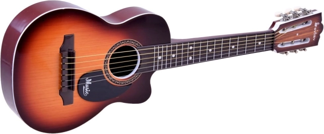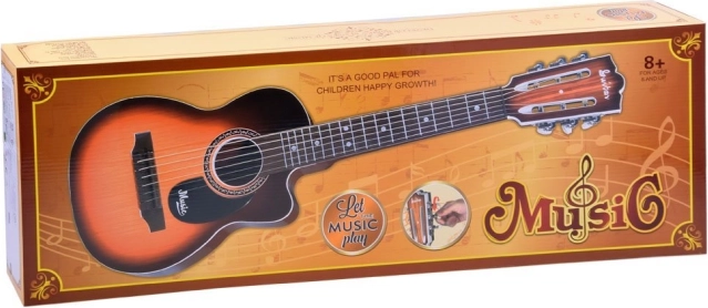 Chitarra leggera in plastica con finitura effetto legno, dotata di 6 corde in metallo e manico regolabile, ideale per le mani dei più piccoli e per i primi passi nella musica. Scelta perfetta per i bambini che amano la musica e vogliono esercitarsi con i primi accordi di chitarra.