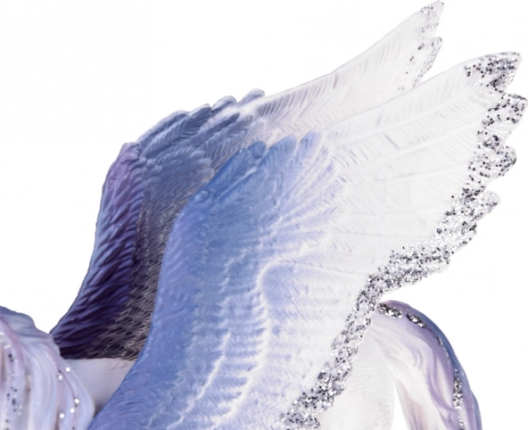 La combinazione di bianco e blu con accenti argentati e le ali riccamente strutturate sottolineano il carattere incantato della figura.