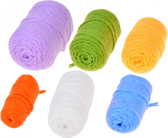 Sei gomitoli colorati stimolano la fantasia e permettono di coordinare i giochi in tonalità allegre, a contrasto o delicate.