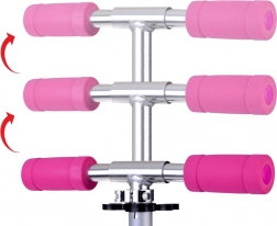 L’altezza si regola facilmente su tre livelli (circa 62/77/88 cm). Le morbide impugnature in foam assicurano una presa salda e confortevole.