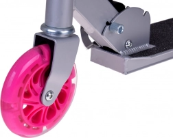 Questo monopattino pieghevole per bambini combina leggerezza, stabilità e sicurezza. Le ruote si illuminano grazie ai LED integrati durante la marcia senza bisogno di batterie, aumentando visibilità e attrattiva. La struttura in alluminio e acciaio è robusta e al tempo stesso facile da trasportare, perfetta per il parco, le piste ciclabili e le vacanze.