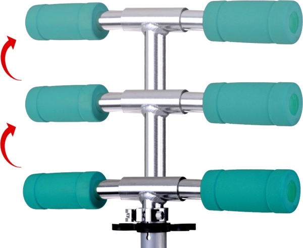 Asta telescopica con più altezze che cresce con il bambino. Morbide impugnature in schiuma per una presa sicura e confortevole.