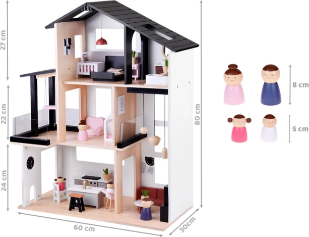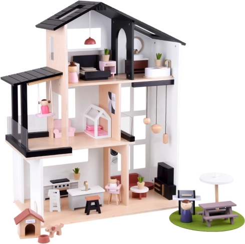 Cercate la casa delle bambole perfetta per sviluppare la creatività dei vostri bambini? Questa moderna casa delle bambole in legno in stile Loft è la soluzione ideale. Realizzata in legno di alta qualità con attenzione ai dettagli, la casa include non solo un elegante soggiorno, una cucina moderna e una camera da letto accogliente, ma anche un bagno funzionale e un balcone.
