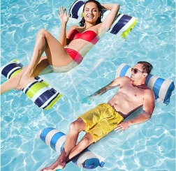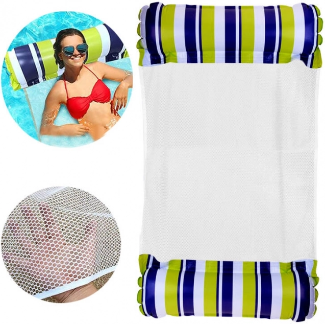 Splendida amaca d'acqua che offre comodità e relax direttamente sulla superficie dell'acqua. Grazie alla costruzione speciale permette di galleggiare leggeri sull'acqua, rimanendo parzialmente immersi, fornendo un piacevole sollievo nelle calde giornate estive.