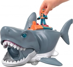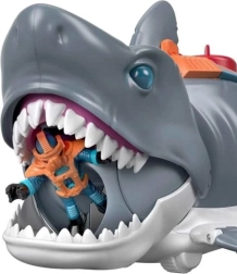 Prendi parte a una emozionante avventura sottomarina con il Mega squalo attaccante Imaginext. Questo grande predatore può inghiottire i subacquei in un attimo! Grazie ai movimenti realistici di nuoto e alla mascella che morde, giocare con esso è davvero interattivo. Lo squalo 'inghiotte' i subacquei, che poi possono essere facilmente estratti dall'apertura posteriore del giocattolo.