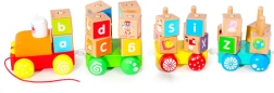 Il treno include 26 blocchi di legno contrassegnati con lettere maiuscole e minuscole dell'alfabeto e vari disegni. I bambini possono costruire semplici parole con i blocchi, erigere torri oppure posizionarli sui vagoni, e quando il treno si muove, i blocchi iniziano a girare su se stessi, catturando sicuramente l'attenzione di qualsiasi bambino.