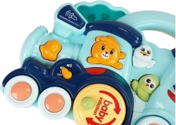 Questa colorata locomotiva per bambini è progettata per sostenere lo sviluppo naturale del bambino già dai 12 mesi. Premendo i vari pulsanti si sentono diversi suoni di animali (gatto, mucca, pecora, cane, maialino, cavallo e uccellini), aiutando a distinguere suoni, colori e forme e stimolando fantasia e percezione sensoriale.
