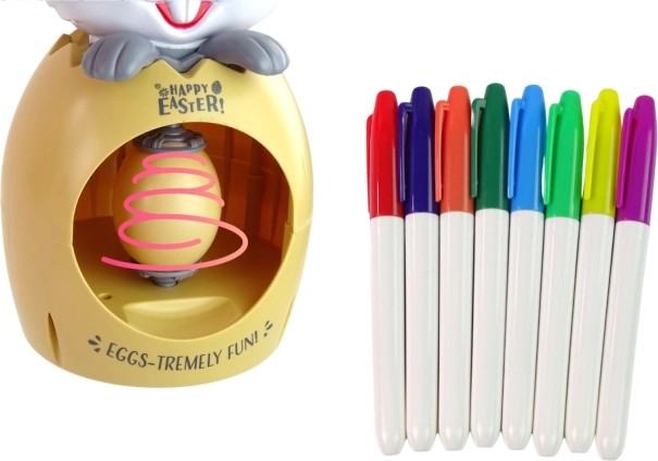 - Set completo – 3 uova, 8 pennarelli e coniglietto-supporto pronti per creare.