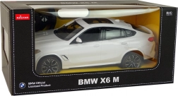 Questo modello con licenza ufficiale BMW X6 M in colore bianco neve si distingue per la riproduzione fedele della carrozzeria, i vetri scuri e gli effetti luminosi per una guida ancora più realistica anche al crepuscolo. Grazie agli pneumatici in gomma affronta sia pavimenti lisci sia superfici meno regolari e offre un controllo fluido avanti/indietro e sinistra/destra.