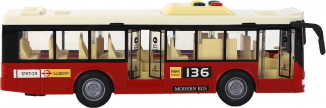 L’autobus urbano rosso a batteria in scala 1:16 è pensato per i piccoli appassionati di mezzi di trasporto. Questo modello realistico offre numerose funzioni che elevano il gioco a un nuovo livello. I bambini possono esplorare con entusiasmo il mondo degli autisti di autobus grazie a quattro pulsanti funzionali sul tetto che attivano diversi suoni.