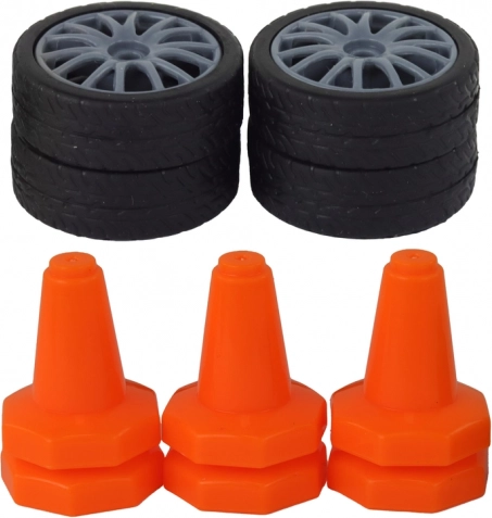- 2 set di ruote (battistrada / drift), coni arancioni