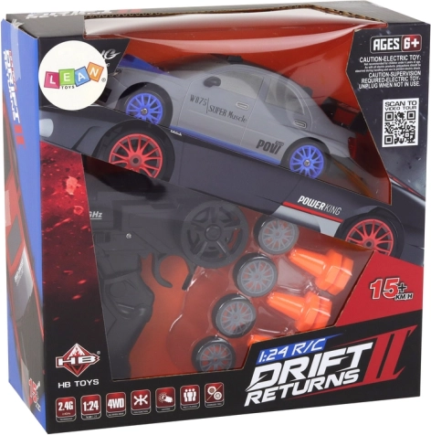 La stilosa auto RC grigia offre un ottimo equilibrio tra prestazioni e divertimento per piloti principianti e avanzati. Grazie alla frequenza 2,4 GHz non subisce interferenze e consente un controllo fluido avanti, indietro e sterzata. Le ruote intercambiabili adattano la guida alla superficie: con aderenza per passaggi veloci, lisce per il drift.