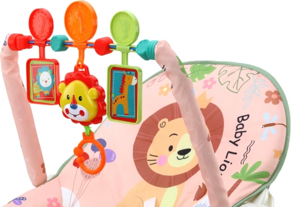 Culla per bimbi Leone Rosa è un luogo confortevole e sicuro per il riposo del tuo bambino, offre divertimento e stimola il suo sviluppo grazie al design allegro e ai giocattoli appesi.