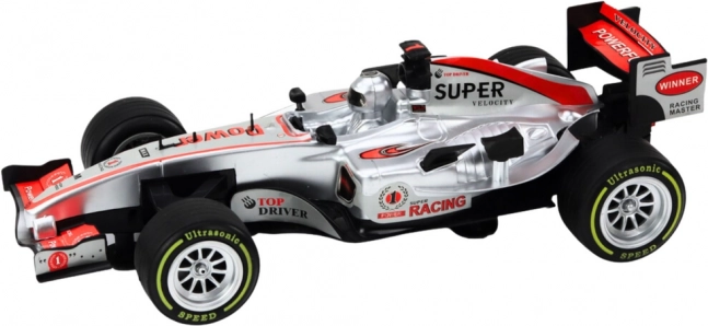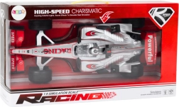 Elegante auto da corsa color argento in scala 1:9 che entusiasmerà piccoli e grandi appassionati. Offre un aspetto realistico, effetti luminosi e sonori e un meccanismo a carica per una guida dinamica. Le grandi ruote da corsa nere garantiscono una buona aderenza su diverse superfici e gli spoiler sportivi conferiscono all’auto un look aggressivo.