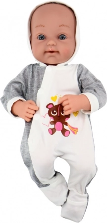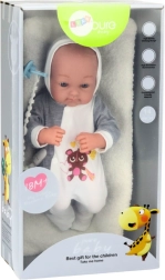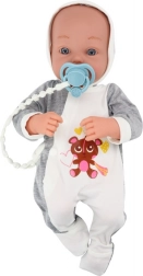 Il set include anche un ciuccio blu su un cordoncino intrecciato e una coperta morbida per un maggiore piacere della cura. Giocare con la bambola espande l'immaginazione dei bambini e li insegna a prendersi cura di un bambino, stimolando così il loro sviluppo sociale.