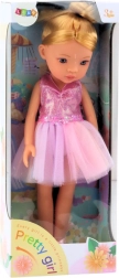 La bambola ha lunghi capelli biondi e un abito rosa scintillante che le conferiscono un autentico aspetto da ballerina.